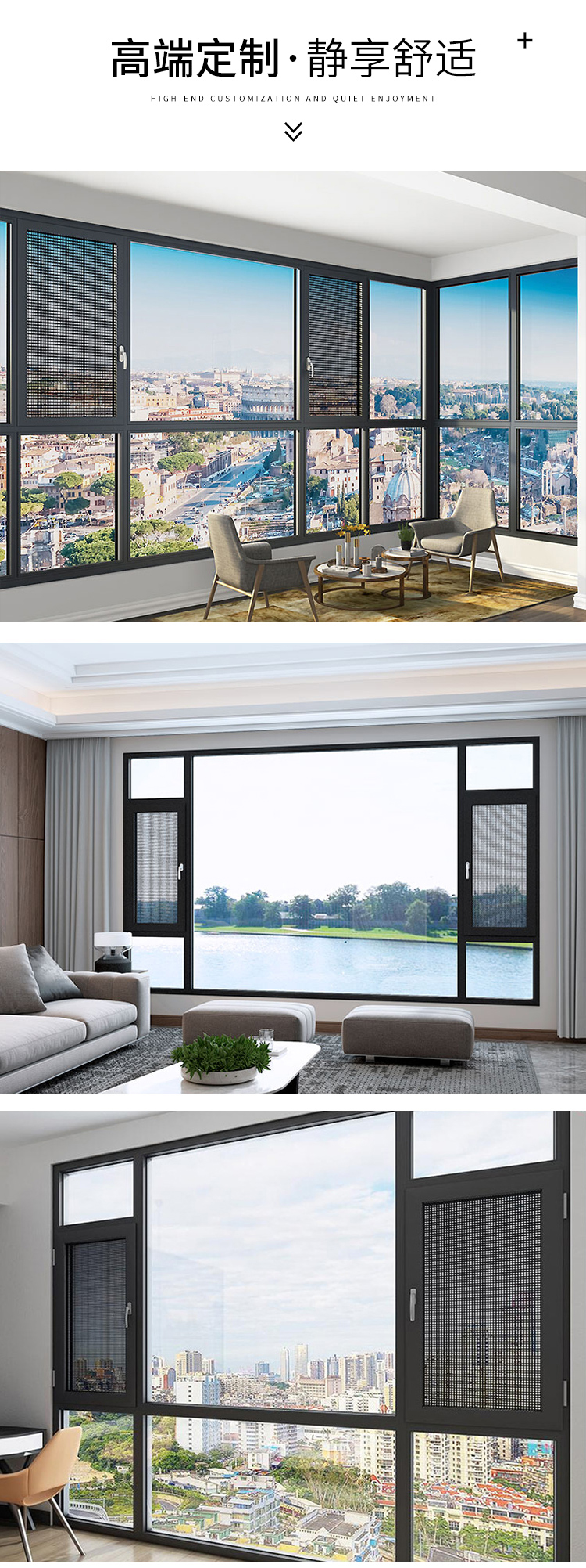 断桥铝门窗封阳台 铝合金窗户 隔音隔热窗户 阳光房